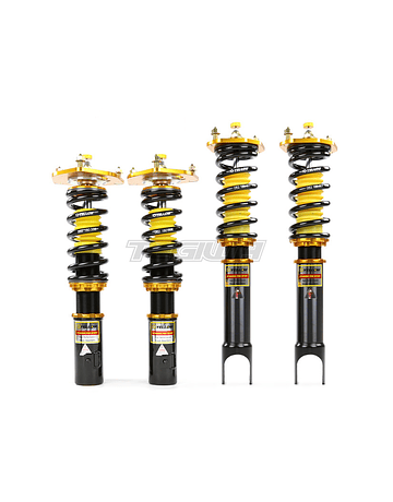DYNAMIC PRO SPORT coilovers are designed and developed for all motoring enthusiasts wanting excellent handling without sacrificing comfort. This suspension system features 33-way adjustable dampening settings and full length adjustment to meet every driver's handling desires. Pillowball mounts and adjustable camber plates are included (some models) for front and rear on most kits to increase steering response, while aluminum upper mounts with hardened rubber bushings are used on some applications for noise reduction.